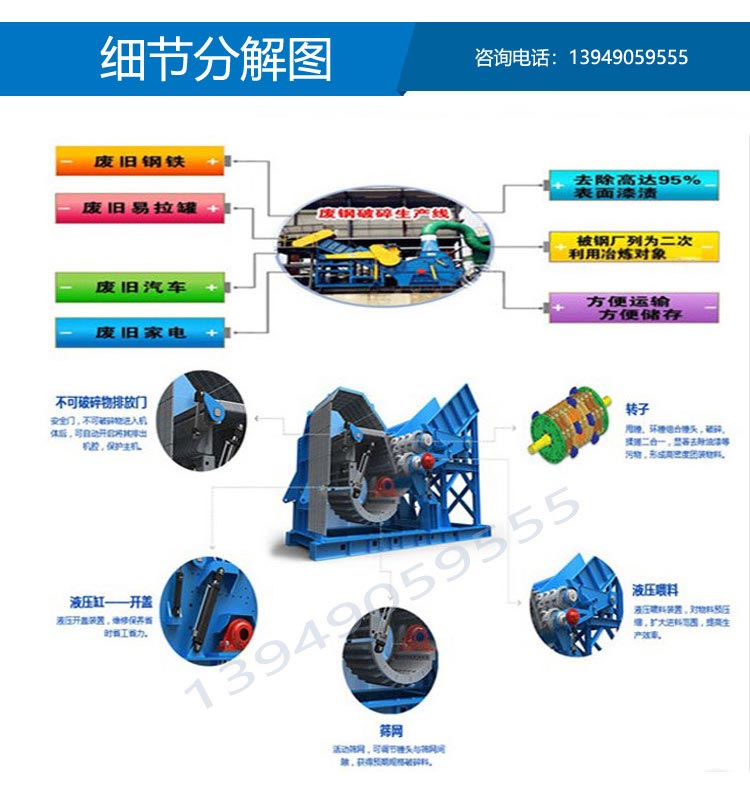 廢鋼破碎機(jī),廢鋼破碎機(jī)生產(chǎn)線: 廢鋼破碎機(jī) 廢鋼破碎機(jī)視頻: 廢鋼破碎機(jī),廢鋼破碎機(jī)生產(chǎn)線用于加工報(bào)廢汽車(chē)車(chē)體、馬口鐵類(lèi)、舊家電、自行車(chē)、舊冰箱、彩鋼瓦、空罐等下等廢料使之成為上級(jí)的制鋼原...